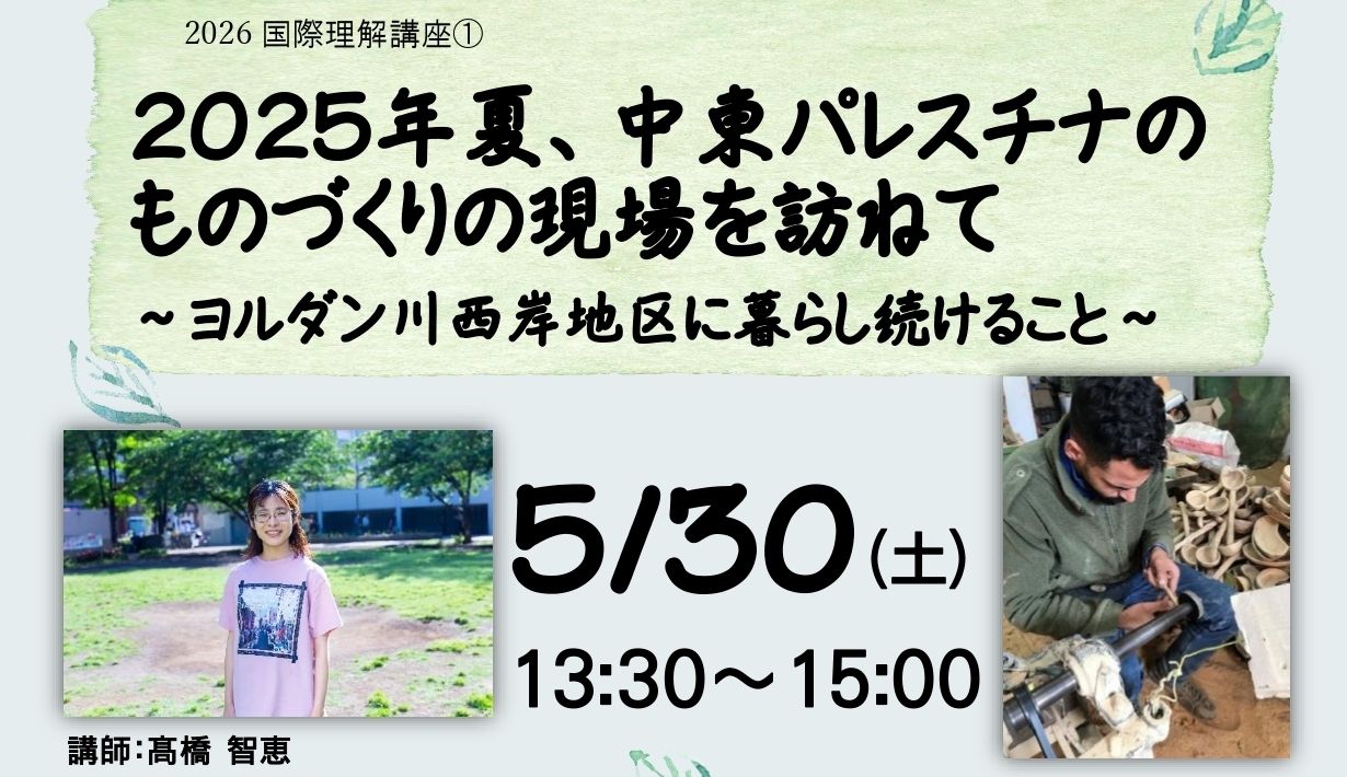 2026 国際理解講座①「2025年夏、中東パレスチナのものづくりの現場を訪ねて」を開催します。