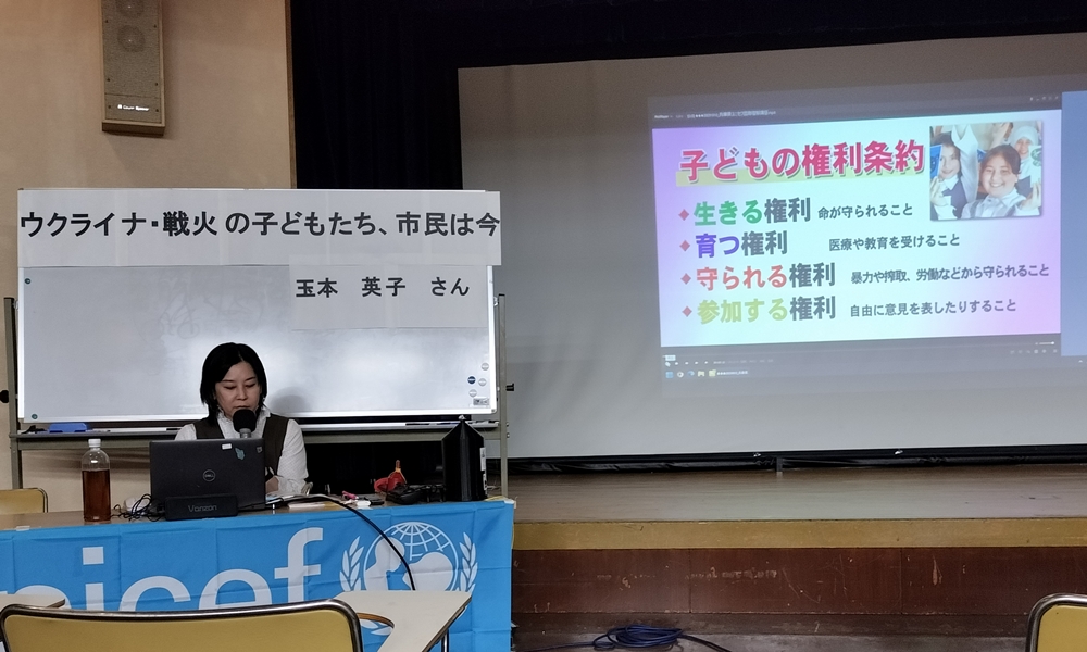 玉本さんは、国連の子どもの権利条約に触れ、「戦争は子どもの権利を侵害している」と語り、ウクライナの市民の暮らしに話を移しました。